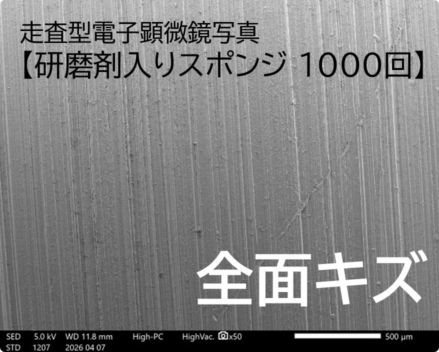 セカンドスポンジ: 2000回こすった後でも、傷は一切確認されませんでした。